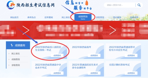 一、登錄陜西招生考試信息網(wǎng)(http://m.letspinning.com/),進入“成績查詢”欄目,在“陜西省成人高校招生考生服務(wù)平臺”,使用報名時所用的證件號碼和密碼登錄后查詢成績。